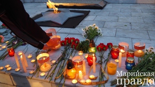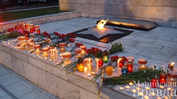В 22:00 сотни свечей зажглись у подножия обелиска, создав одну большую «огненную картину» с надписью «Волжск помнит». Акцию организовало местное отделение партии «Единая Россия» и «Волонтеры Победы».