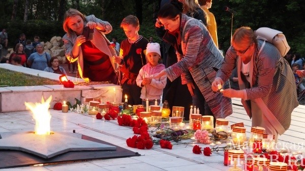 В память о защитниках родины, героическом подвиге нашего народа, который сквозь боль и огромные страдания смог преодолеть страшную трагедию, волжане зажгли свечи и возложили цветы к обелиску воинской славы.