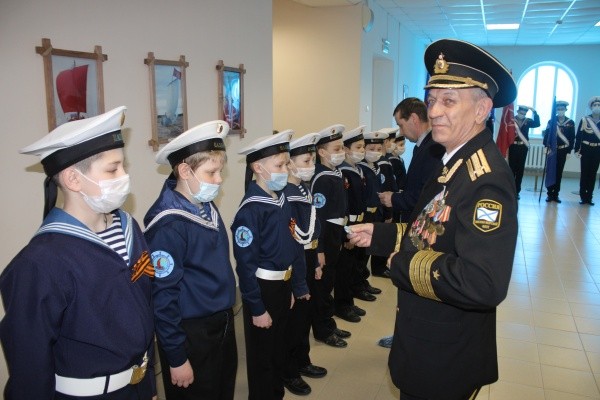 Присутствующие ветераны выступили с напутствующими пожеланиями к юным морякам – будущим защитникам нашей России. Очень символично, что в этот знаменательный день 13 юных моряков были посвящены в юнармейцы. Торжественную клятву юнг принял начальник Регионального штаба ЮНАРМИИ А.Я. Мухачёв, председатель совета ветеранов моряков-подводников Марий Эл В.А. Коржавин, председатель Регионального отделения ДОСААФ России по Марий Эл В.Н. Тихонов, заместитель мэра Козьмодемьянска Д.А. Бузанов.
