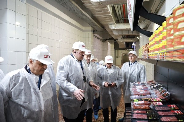Далее гости посетили Йошкар-Олинский мясокомбинат — один из крупнейших в Приволжье. Предприятие выпускает 500 наименований продукции, до 60 тонн в сутки, его торговая сеть насчитывает почти 500 объектов. Бренд «Йошкар-Олинская тушенка» можно найти во всех магазинах страны.