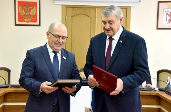 Спикер республиканского парламента Михаил Васютин вручил Анатолию Васильевичу памятный подарок и приветственный адрес законодательного органа.