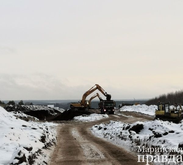 Этой осенью трасса была перегорожена бетонными блоками, и начался демонтаж отслуживших свой век плит. Сейчас несколько погрузчиков и целая вереница мощных грузовиков заняты на дороге земельными работами. На площадке у поворота на деревню Пукшалмучаш выросла уже целая гора грунта.