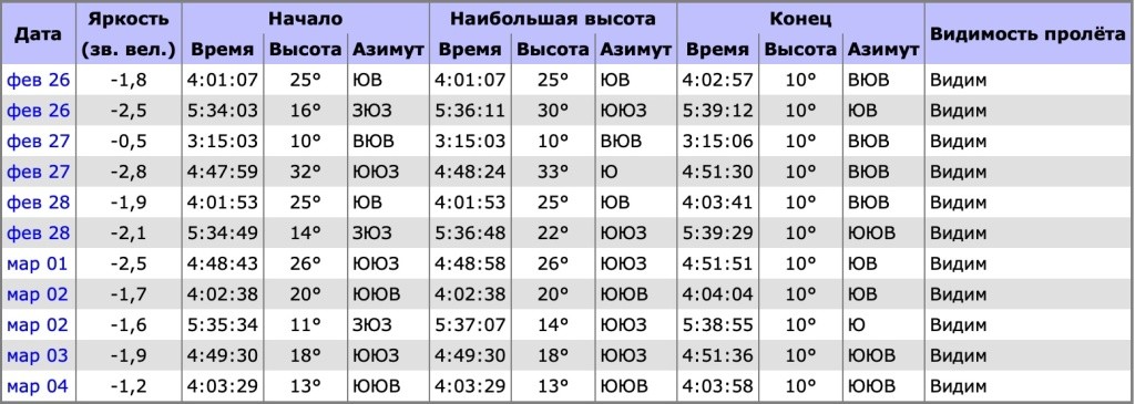 «МКС ‒ это яркая «движущаяся звезда», которая за 90 минут облетает Землю. Представьте: на высоте 400 км летит дом для астронавтов со скоростью 28 000 км/ч! И всё это можно увидеть без телескопа ‒ только чистое небо и ваше внимание!», - отметил руководитель астрономического клуба Константин Соловьев, составивший для удобства романтиков специальную таблицу.