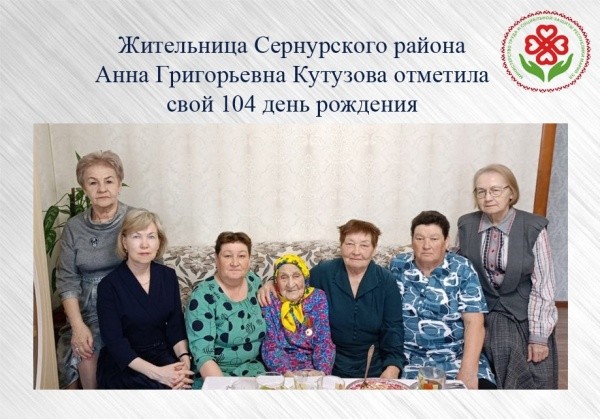 Свое 104-летие отпраздновала 3 апреля жительница Сернурского района, труженица тыла Анна Григорьевна Кутузова.