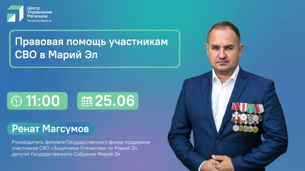 В среду, 25 июня, в 11:00 ЦУР проведет прямой эфир на тему помощи участникам СВО в Марий Эл.