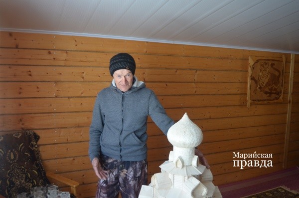 Вот уже три года житель поселка Куженер Марий Эл Николай Горохов строит храм. Точнее, макет Преображенской церкви в Кижах. Работы еще немало. Макет стоит в мансарде его фазенды, а купола (всего их 22) находятся в мастерской на первом этаже. Над ними мастер сейчас и колдует.