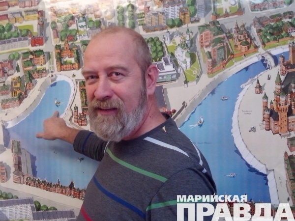 Но Михаил Каплан не единственный автор этого полотна. Придать цвет картине помог его друг из Казани – Сергей Петров. Несмотря на то, что он житель соседней республики, Сергей знает и любит Йошкар-Олу, поэтому с радостью согласился помочь давнему приятелю. Именно он раскрашивал карандашный набросок, придавая Йошкар-Оле ее привычный облик. Делал он это не вручную, как Михаил, а с помощью специальной компьютерной программы в акварельной манере.