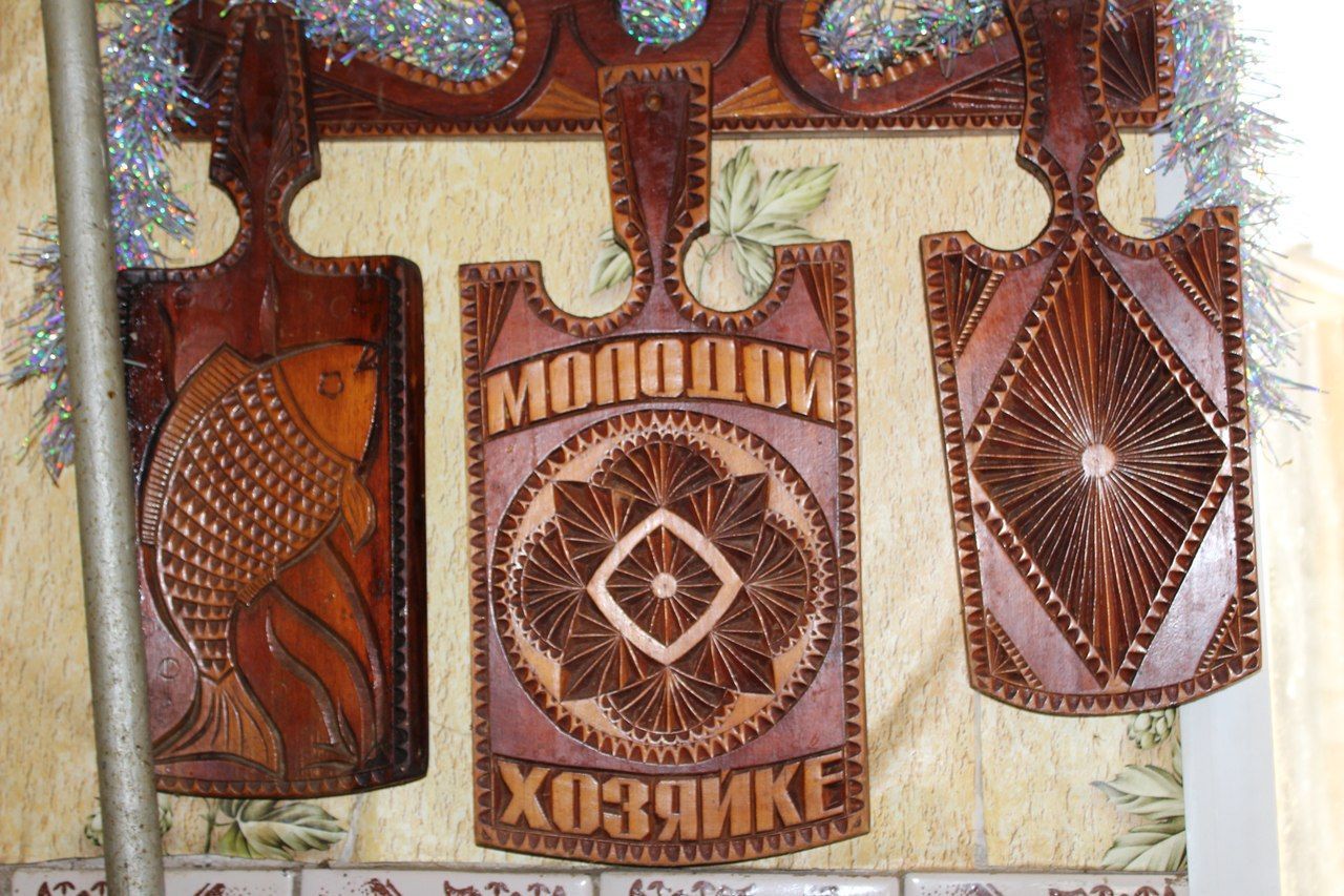 За все то время, что он занимается резьбой по дереву, больше всего времени мастер потратил на кухонный набор, состоящий из хлебницы, двух разделочных досок и иконостаса.