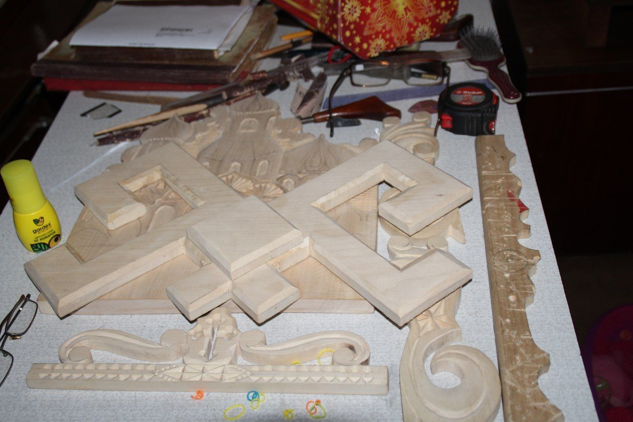 Кроме всего прочего Владимир занимается чеканкой. Мастер говорит, что чеканка - очень трудоемкий процесс: сначала надо лудить с помощью паяльной лампы, а потом обрабатывать поверхность кислотой. К тому же кислоту трудно достать. Однако некоторые свои творения из дерева мужчина украшает металлическими элементами. К примеру, для иконостасов Владимир добавляет небольшие кресты и подставки для восковых свечей.