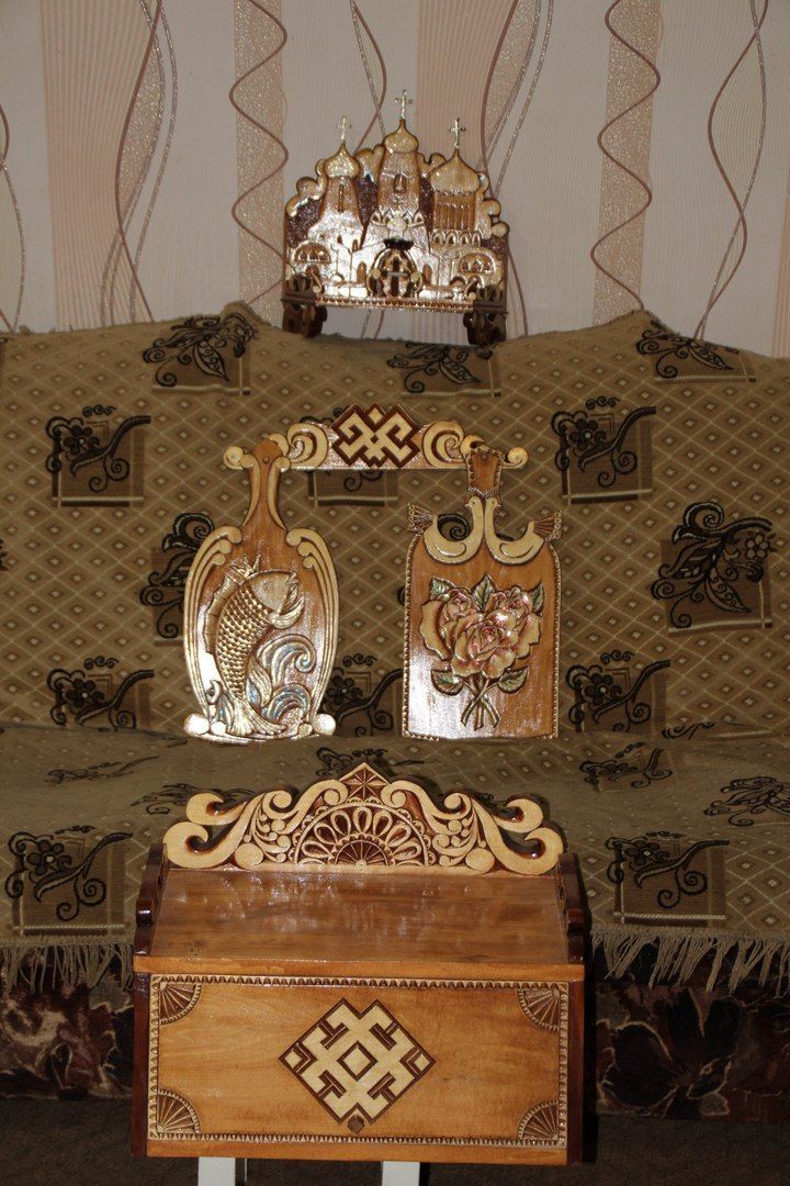 Народный умелец житель деревни Тапшер Советского района, мой тезка, Владимир Ильич Виногоров вырезает из дерева предметы домашнего быта.