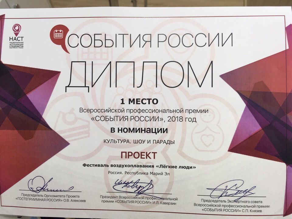 Проект клуба воздухоплавателей "Легкие люди" Республики Марий Эл стал победителем финала премии «События России».