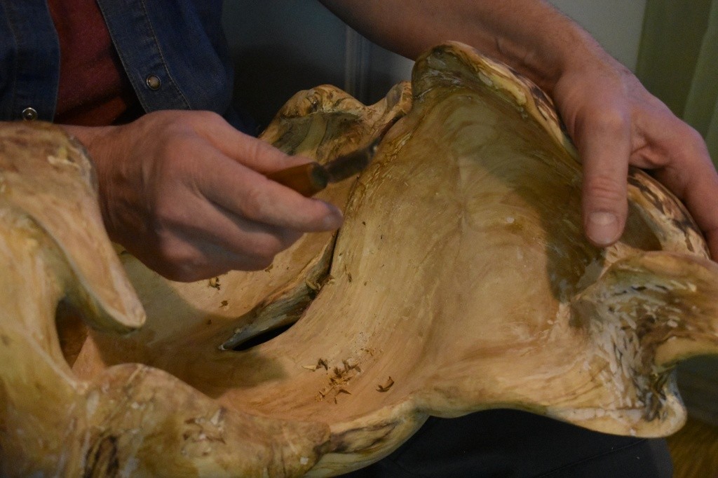 Самое сложное в этом деле – увидеть, что из нароста получится. Иногда на это могут уходить недели: вертит мастер в руках сувель или кап, откладывает, потом снова достает и смотрит свежим взглядом, думая, за что зацепиться.