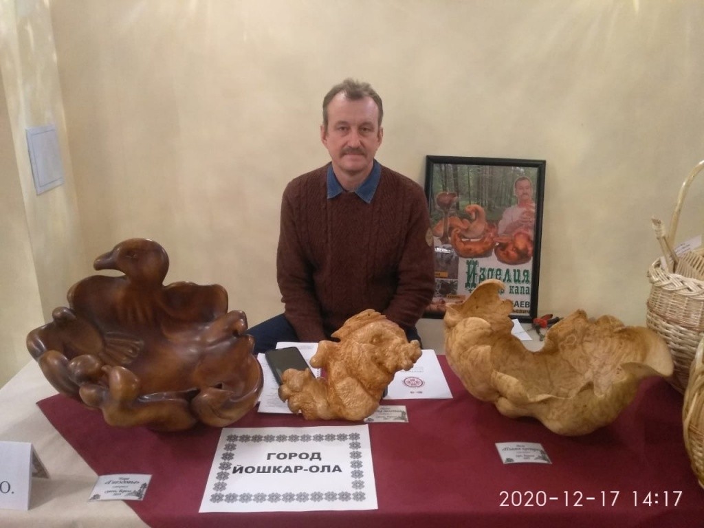 Несколько лет назад Павел Николаев поставил перед собой задачу: смастерить 100 изделий. Это, можно сказать, его личная программа: выполнить определенное количество изящных, неповторимых работ и представить их на выставках во всех районах нашей республики. Сейчас у него около 80 изящных вазочек, чаш, тарелок, фигур птиц и животных, масок (делает даже автопортрет). Имеется в наличии и стол. Большинство этих предметов уже побывали в девяти районах Марий Эл. Есть у него и желание наладить сотрудничество с Мордовским музеем им. С.Д. Эрзи.