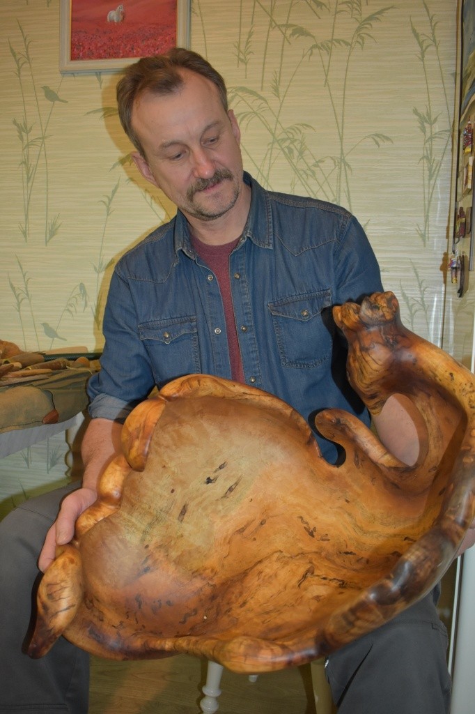 После таких мероприятий, как правило, аппетиты растут, хочется делать лучше, интереснее предыдущего, возникает желание общаться с такими же мастерами. Поэтому поехал на фестиваль «Родники России» в Чувашии. Но изделий из капа и сувели там было немного. Трудозатратное это дело, небыстрое, да и спрос на предметы из древесных наростов специфический: изделия стоят недешево. Так что в нашей республике, как говорит, Павел Юрьевич, этим, помимо него, занимаются еще один-два мастера, но не в таких масштабах, как он.