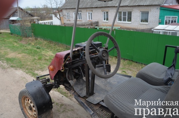 Мне нужна была простая и экономичная рабочая лошадка, на которой можно возить грузы, или отправиться в лес, - рассказывает он. - Ходовые испытания проведены и могу сказать, что проект реализован неплохо. Например, чтобы съездить в деревню Башкири, чем-то там позаниматься и вернуться обратно мне хватает бака вместимостью всего 3,4 литра, так что трактор получился вполне экономичный.