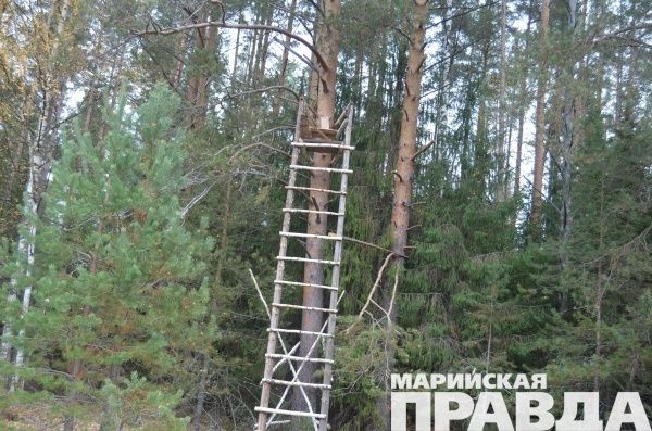 Есть здесь и крупное зверье, вот с этого лабаза, устроенного на огромной сосне нынче уже добыли медведя. Чтобы приманить мишку, рядом посеяли овес, ну он и купился. Впрочем, все законно, у людей было разрешение. Хотя хватает и браконьеров, нынче госинспектор выявил здесь факт браконьерства. Мы были в этом месте - все произошло на затянутом мелколесьем горельнике 2010 года. Здесь и нашли останки убитого лося, жулики забрали мясо вместе со шкурой, а все остальное выбросили, даже не потрудившись закопать, видимо очень торопились смыться с места преступления.