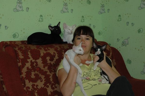 Ориенталы — не настолько «инопланетные» создания, как сфинксы, но все же вид у них довольно необычный. Стройное вытянутое тело, удлиненная голова, большие широко расставленные уши... Кое-кого, пожалуй, они даже могут озадачить. А вот Ольга считает их самыми изящными и грациозными из всех кошек:
