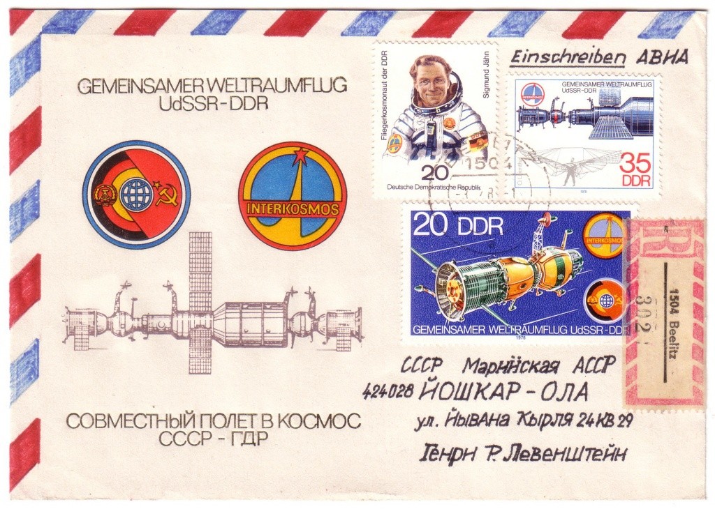 В начале 1980-х годов я даже подготовил филателистическую выставку «Исследования Луны». Она довольно долго экспонировалась в магазине «Планета», который работал в центре года – на площади Ленина, в здании, расположенном напротив Марийского драмтеатра имени М. Шкетана. Именно там филателисты моего поколения покупали новые марки, распространявшиеся по каналам «Союзпечати». Есть в коллекции один экспонат, к которому я испытываю особые чувства. Это прошедший почту конверт, получателем которого был известный йошкар-олинский журналист, писатель, фотограф, коллекционер и путешественник Генри Рудольфович Левенштейн, 100-летие со дня рождения которого мы отмечали в прошлом году. Конверт и украшающие его марки посвящены полёту советско-германского экипажа по программе «Интеркосмос» в 1978 году. Ценным этот конверт делает для меня, конечно же, имя получателя, с которым мне посчастливилось быть лично знакомым.