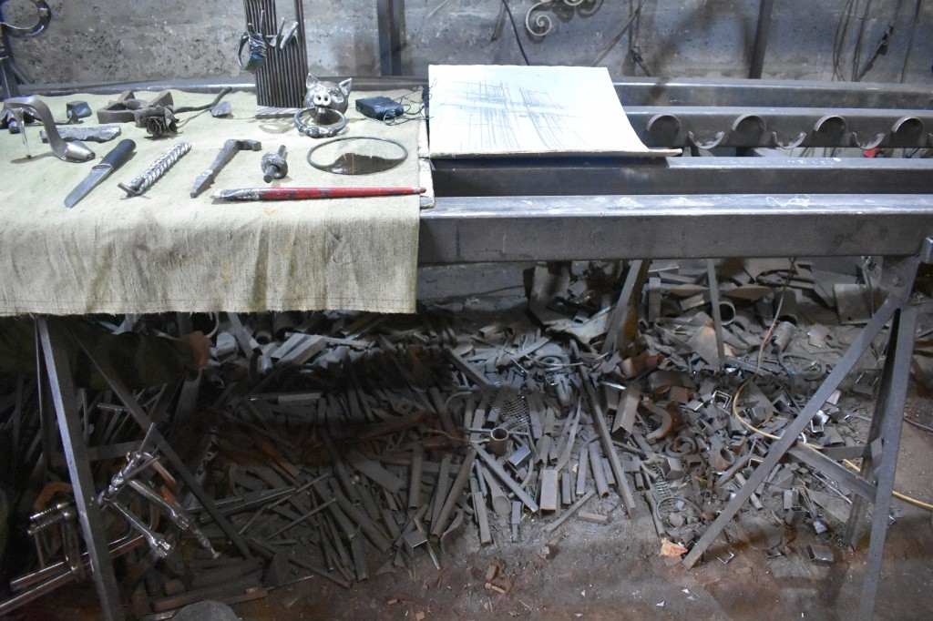 Сейчас, как говорит кузнец, у него черно-белое искусство: за краски давно не брался, а вот за чертежи-эскизы будущих работ − каждый день. Проблема кузнечного искусства, по словам Романа, в том, что его вытесняют технологии, например, даже банальные станки ЧПУ. Раньше работали на угольном горне, теперь − на газовом: быстрее, удобнее, без дыма. Раньше были меха, теперь − электроподдув. Раньше все ковалось из цельного металла, сейчас − из тонких металлических листов, которые больше подвержены коррозии, но удобнее в использовании. Словом, современность берет свое.