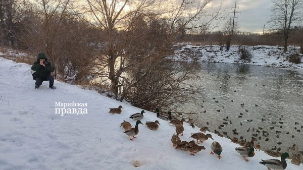 Прошли вдоль Кокшаги, добрались до плотины. Сколько здесь уток – не счесть! Щелк, щелк – и красивые кадры Петра Николаевича готовы.