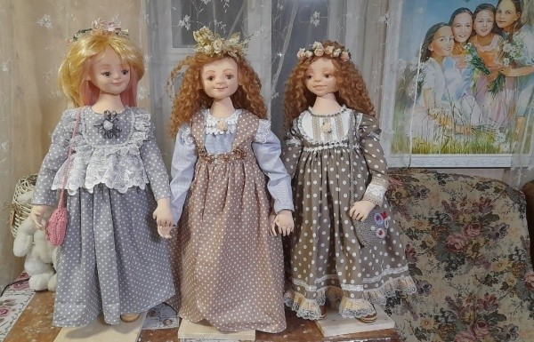 Любовь к куклам сопровождала Татьяну с самого детства. Ее первые кукольные эксперименты были простыми, из спичек и ткани, затем освоила искусство создания бумажных кукол, а со временем мастерство достигло уровня изготовления ватных игрушек.- Чтобы получить расписное личико, я работаю с молдом. Сначала вдавливаю в него заготовку, а затем бережно ее извлекаю. После того, как глина высохнет, приступаю к росписи, используя краски и тонкую кисть, чтобы придать личикам игрушек нужное мне выражение, - поясняет мастерица. - Каркас делаю из проволоки, формирую ее, обматываю ватой и закрепляю нитками. Одежду делаю тоже из ваты или вяжу.Недавно Татьяна Бажанова завершила работу над куклами в стиле «Тильда». Она создавала их для своих дочерей.