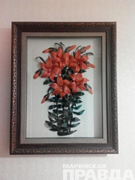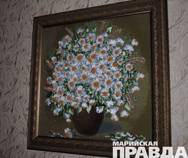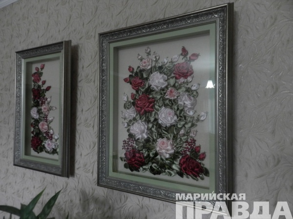 Сколько сегодня вышила картин, уже и не знаю. Их десятки. Что-то ушло в частную коллекцию, кому-то сама дарю. Творчество мне очень помогает не только время коротать, но и от мыслей тяжелых отвлекает. У меня непростая работа в Центре предоставления мер социальной поддержки населению в Медведевском районе. Люди приходят чаще те, которые находятся в непростых жизненных ситуациях. Дома после работы мои цветы, вышивка хорошо поднимают настроение.