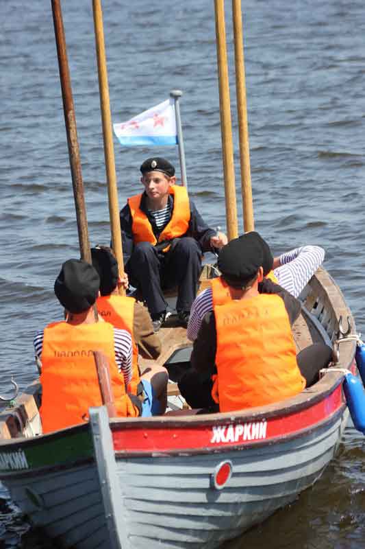 А сами гонки состоялись на водной акватории реки в районе Стрелецкой часовни, построенной после морских Азовских походов Петра Первого, в которых участвовали и козьмодемьянские стрельцы. Символичным стало и то, что одна из шлюпок названа в честь эсминца «Жаркий», на котором служил во время Великой Отечественной войны наш земляк — Сергей Максин. Безусловно, это и вдохновляло козьмодемьянских ребят на победу. А еще на берегу было много болельщиков, которые, может быть, впервые в своей жизни увидели настоящие шлюпки ВМФ ял-4 - «парты моряков».