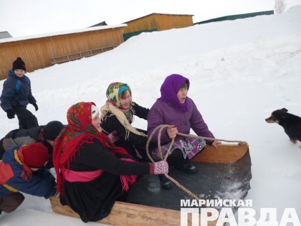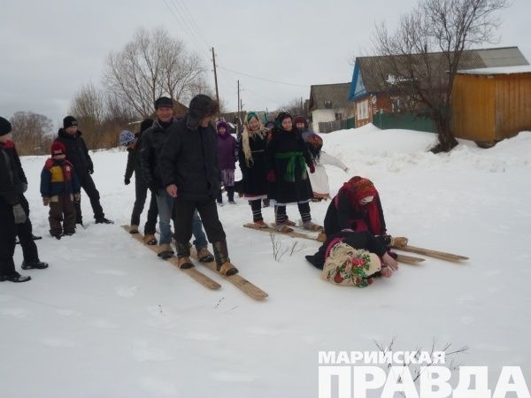 Участники Масленицы в деревне Чодраял Куженерского района Марий Эл пережили настоящее погружение в прошлое: старинная одежда, лапти,  игры давно минувших дней. Здесь помнят экстремальные забавы предков и охотно принимают в них участие.