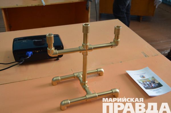 Удивляться пришлось еще не раз, потому что подсвечник этот, как пояснил преподаватель АСТ Сергей Горбунов, сделан из бесполезных остатков полипропиленовых труб.
