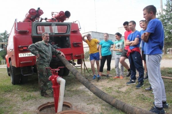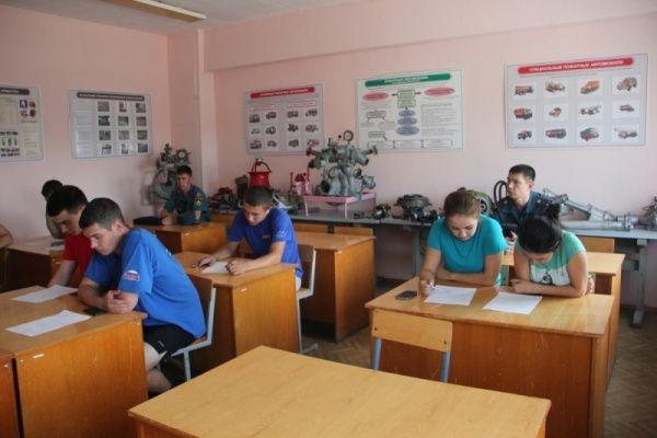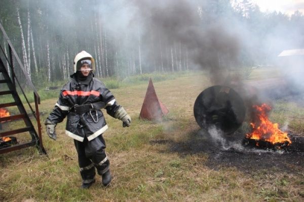 Самый зрелищный этап занятий - огневая психополоса. Специальные снаряды под открытым небом, в форме подвалов и строительных конструкций. Тут создана обстановка, приближенная к той, в которой приходится работать огнеборцам на пожарах. Действия в условиях, приближенных к боевым, в среде, наполненной огнем и дымом, способствуют формированию у бойцов эмоционально-волевой устойчивости к риску и опасностям различного рода. Психополосу молодые специалисты прошли успешно. И, конечно, проверяли теоретические знания.
