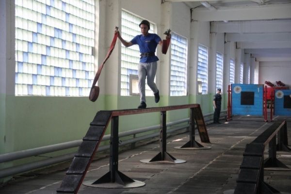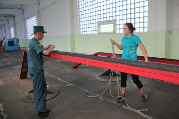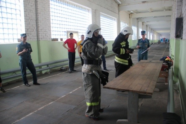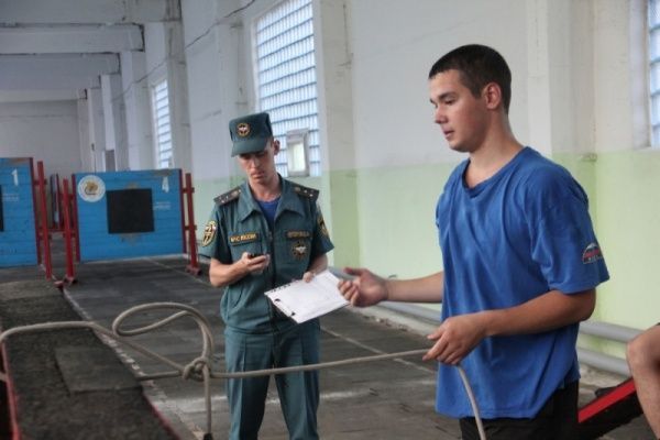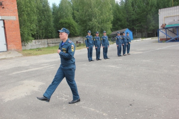 Была строевая подготовка. Потом молодые офицеры по временному нормативу надевали боевую одежду пожарного, вязали двойную спасательную петлю, подтягивались и сдавали другие нормативы.