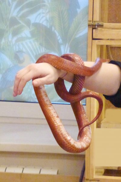 Кроме того, маисовые полозы неядовиты и миролюбивы - их можно преспокойно брать на руки. И вот результат- сегодня это самые многочисленные змеи из разводимых в неволе. Не исключено, что в домашних условиях их содержится больше, чем в дикой природе. Таким образом, отлавливать рептилий в зарослях кукурузы нет нужды — вполне хватает выведенных в питомниках.