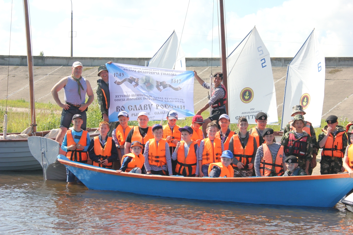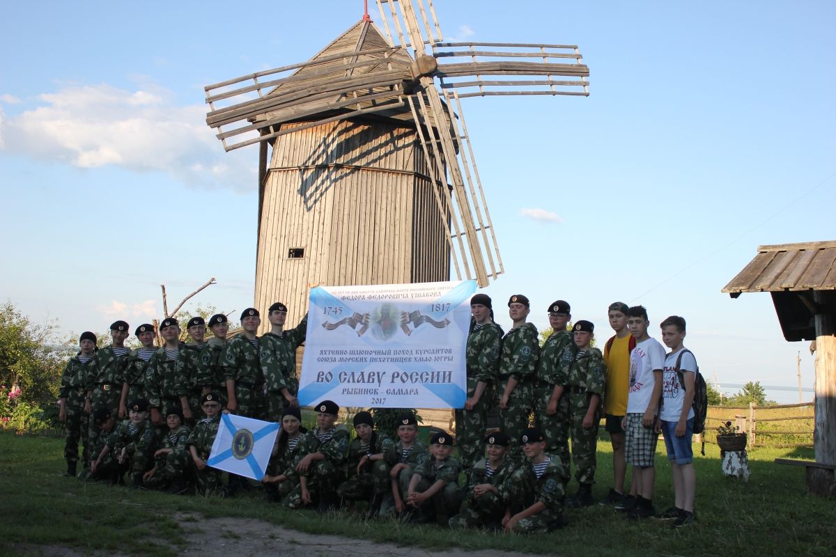 В Козьмодемьянск (Марий Эл) прибыла группа юных морских пехотинцев - участников шлюпочного похода по маршруту Рыбинск - Самара, посвященного памяти адмирала Федора Ушакова (в этом году исполняется 200 лет со дня его смерти). Всего в походе участвовал 31 человек (7 взрослых и 24 юных морпеха). Это друзья парусного клуба «Паллада» из Сургута.