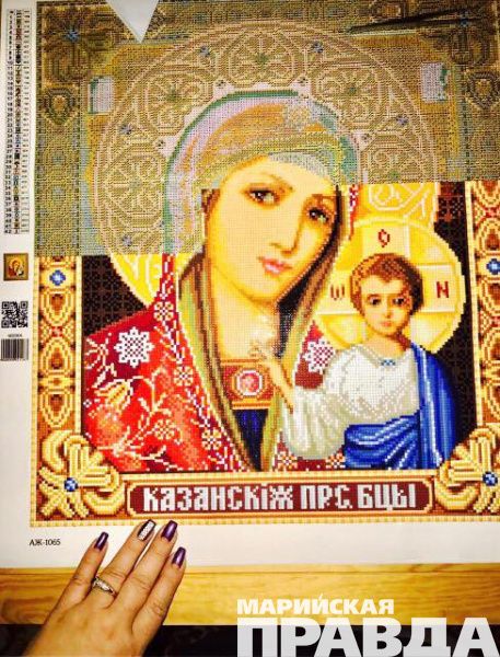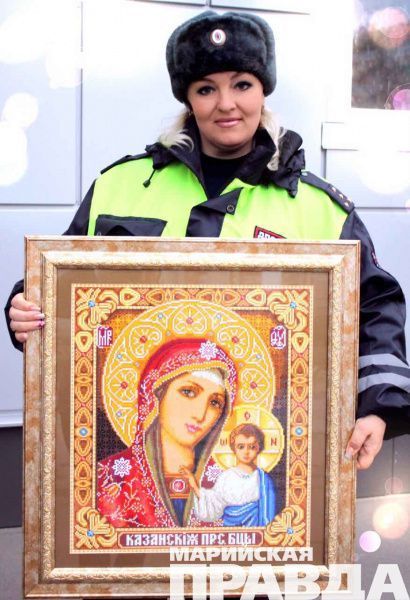 - Большое увлечение алмазной вышивкой у Лилии Сидоровой началось знакомством с этой интересной технологией в соцсетях. Суть ее в том, что на плотную бумагу выкладываются стразы. Вероятно из-за того, что стразы очень красиво переливаются и сверкают, такую технику создания картин и назвали алмазной вышивкой. Икону Казанской Пресвятой Богородицы сотрудница ГАИ делала около трех месяцев, вечерами и ночами. Сегодня, накануне Светлой Пасхи, она отнесла икону в церковь для освящения, - рассказывают в Группе по пропаганде безопасности дорожного движения УГИБДД МВД по Марий Эл.