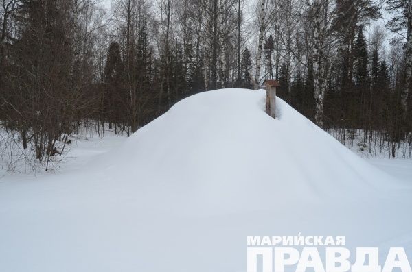 Позади остаются остатки деревенской улицы, на которой стоит еще довольно крепкий, построенный совхозом «Казанский» трехквартирный дом, в котором теперь, правда, никто уже не живет. Мы добираемся до лесной опушки, впереди, рядом с разномастным лесом, где елки соседствуют с ивами, возвышаются странные снежные пирамиды правильной формы с трубами вентиляционных шахт наверху. Этакие большие ледяные иглу людей с севера.