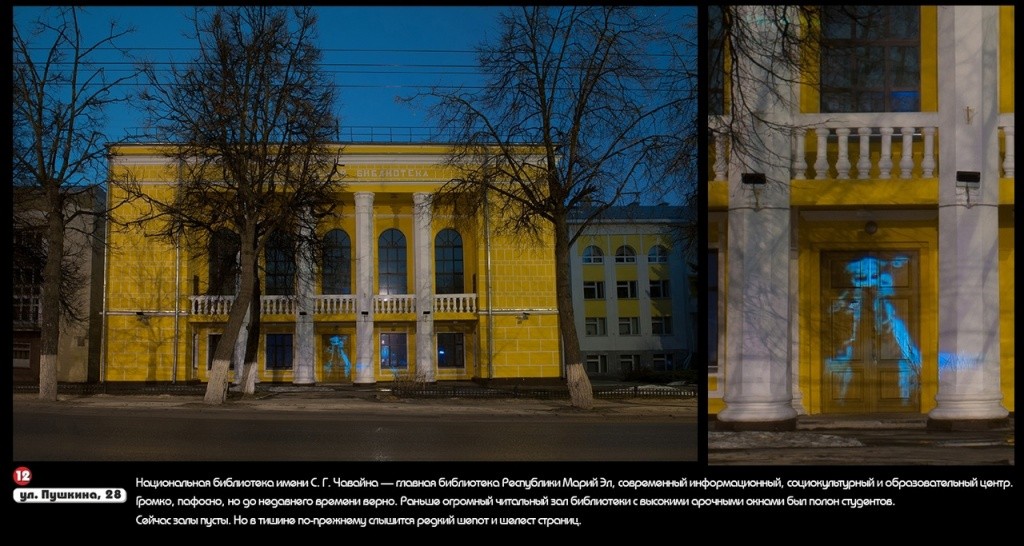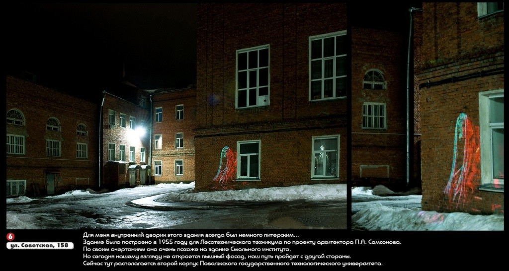 − В каждом городе есть свои духи. И чем меньше город, чем дальше он от центра, тем большей жизненной силой обладают его призрачные обитатели. Духи верны тому месту, где родились. Незримые для нас, они по-прежнему здесь. Их не трогает наше неверие, они давно стали частью этой земли. Порой кто-нибудь из них случайно попадается в ловушку объектива, а затем они снова ускользают от взгляда. Для меня прогулка по ночному городу стала своеобразным паломничеством, поиском чего-то настоящего: города без суеты и маски современности, поиском истоков его мифов и легенд, − так она анонсировала своей фотопроект.