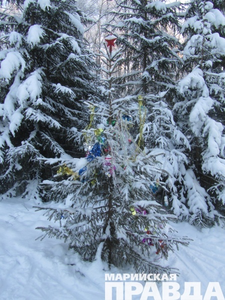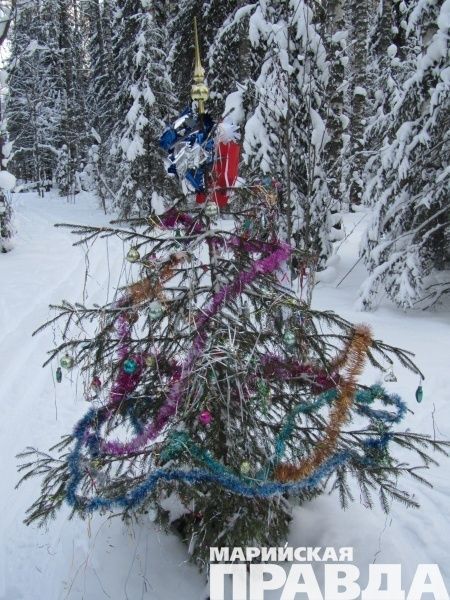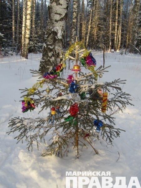 В поселке Куженер Марий Эл все большее распространение получает традиция наряжать елочки в диком лесу.