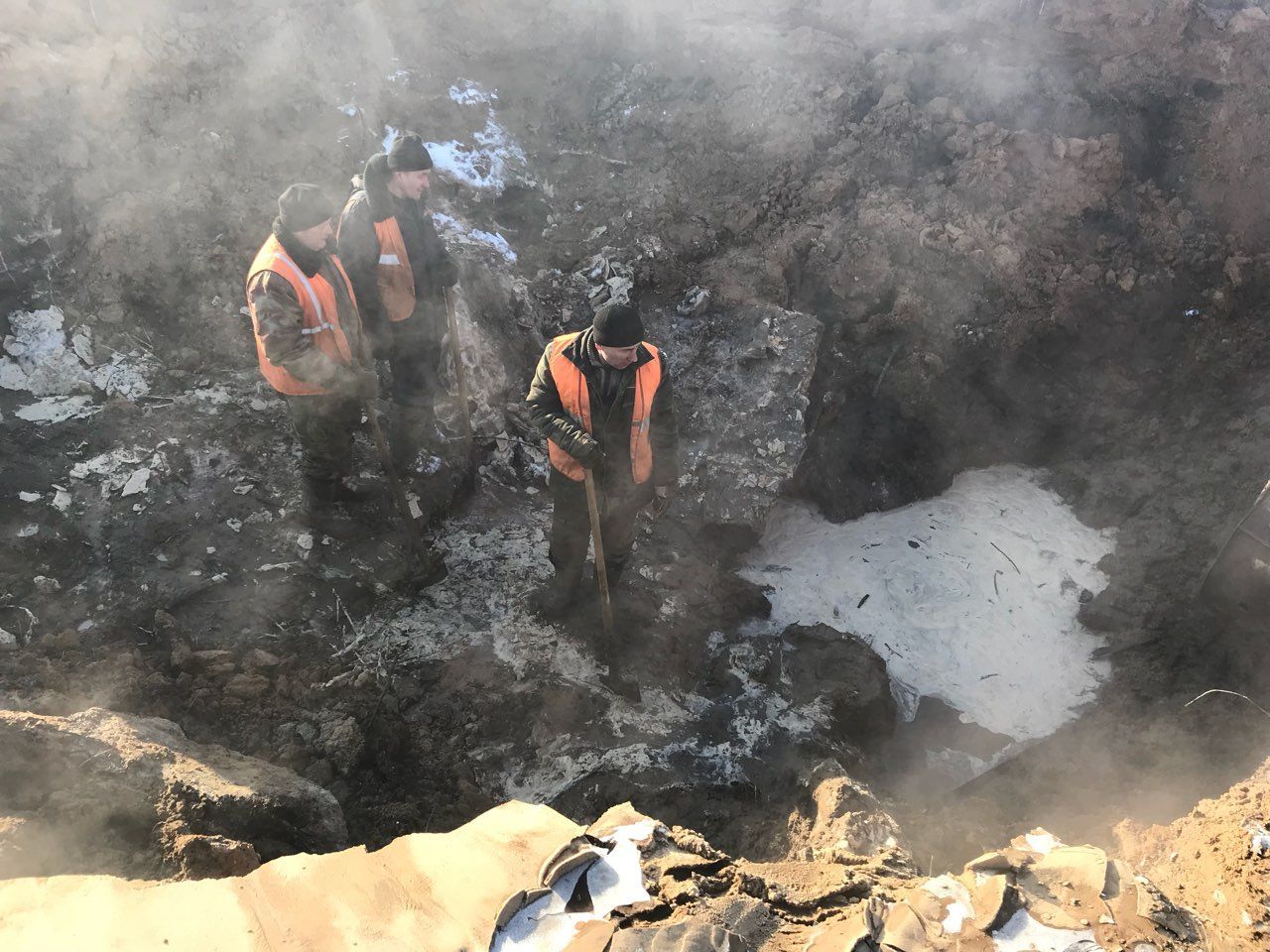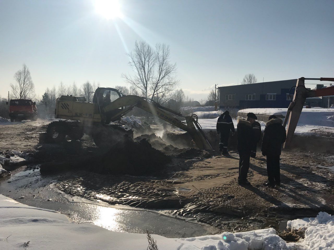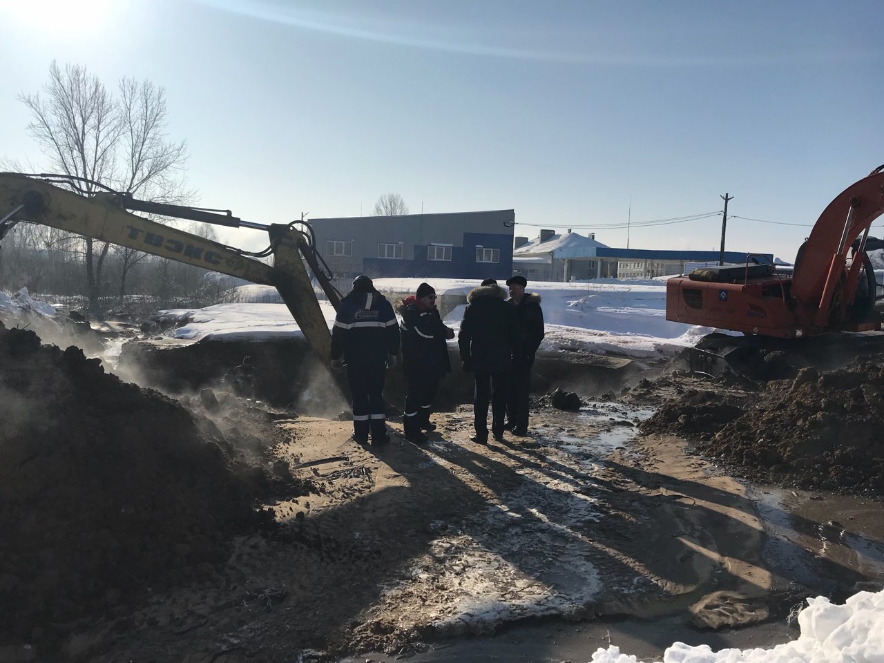 К 7.00 место, где произошла авария, нашли. Оказалось, что у дома №10 в на Йошкар-Олинском шоссе вода разворотила чугунную трубу, проложенную на трехметровой глубине.