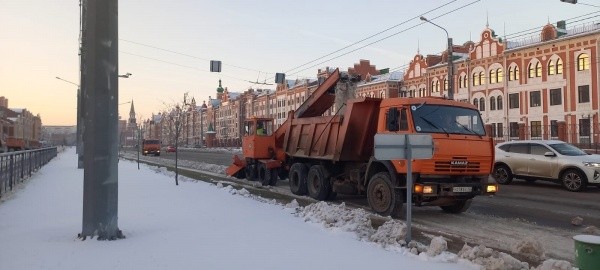 При этом основные работы по вывозу снега проходит ночью, когда на трассах Йошкар-Олы уменьшается транспортный трафик.