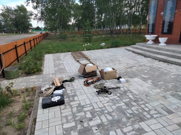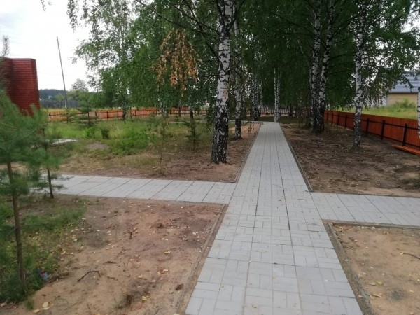 Проектом запланировано устройство ограждения (188 метров), покрытие территории брусчаткой, устройство двух калиток, установка двух светильников и двух скамеек.