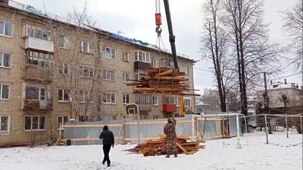 Работы проводятся в доме №143 по улице Я.Эшпая. Первоначально ремонт крыши здесь был запланирован на 2038 год, но собственники решили перенести их на 2025 год для более оперативного решения проблемы. Теплая погода позволила начать работы уже зимой.