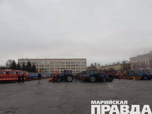 Убедиться в том, что снегоуборочная техника в Йошкар-Оле есть и находится в полной боевой готовности, могли сегодня все, кто проходил мимо площади Ленина. Здесь можно было увидеть десятки тракторов с различными прицепами, использующимися для ухода за тротуарами и проезжей частью улиц, снегопогрузчики, универсальные погрузчики, грейдеры, самосвалы и прочую технику.