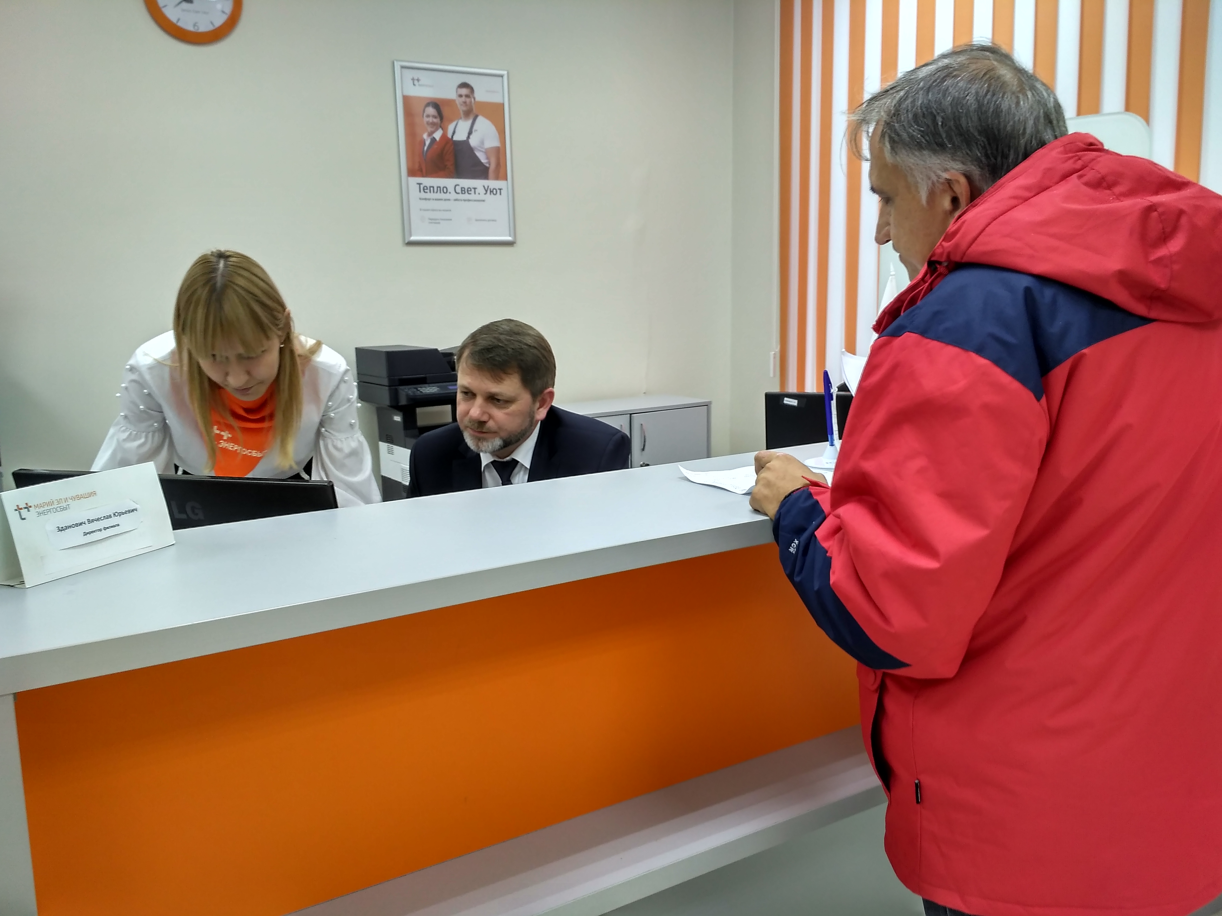 Специальную акцию «Клиентские дни» с 16 по 18 октября провел для своих клиентов в двух регионах Филиал Марий Эл и Чувашии АО «ЭнергосбыТ Плюс». Энергетики помогли потребителям научиться пользоваться новым онлайн-сервисом, позволяющим решать вопросы, касающиеся теплоснабжения, не выходя из дома. Желающие могли встретиться и лично с директором филиала Вячеславом Здановичем, который принял непосредственное участие в акции.