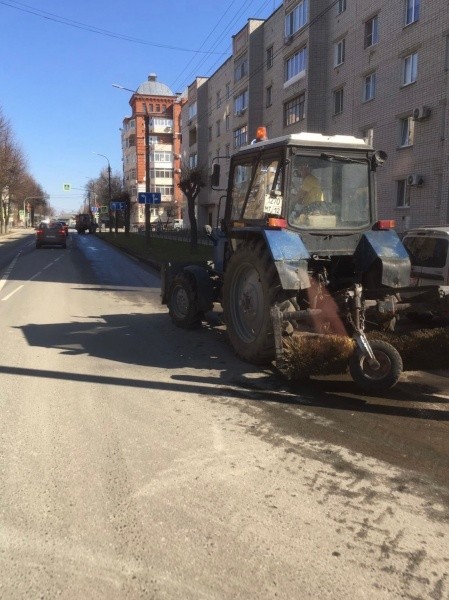 Причём работа продолжается и в выходные дни. В уборке рабочим помогает и спецтехника, в том числе подметальная машина.