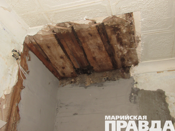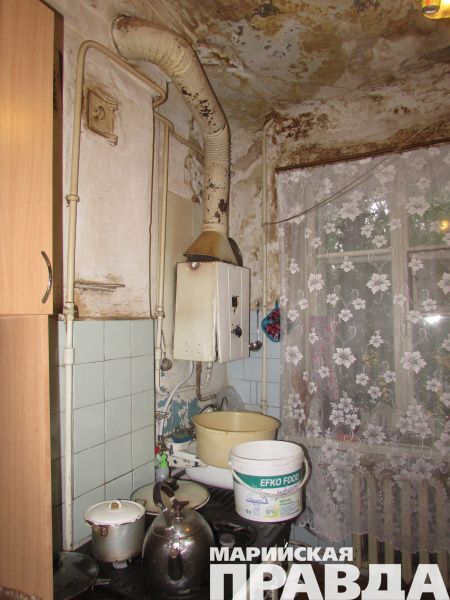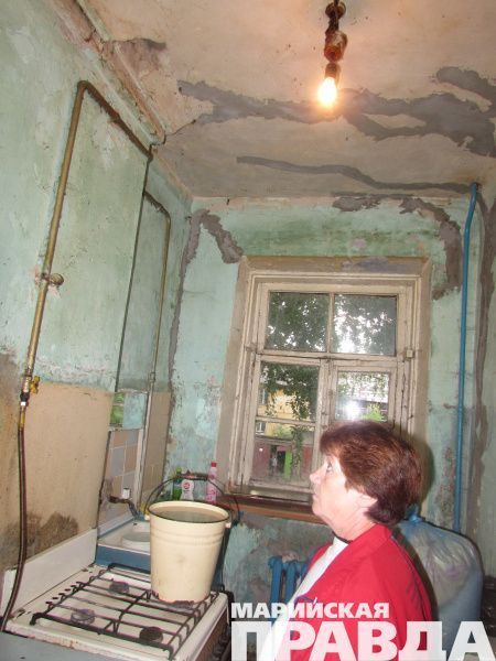 Йошкаролинка Антонина Цвекалова прикована к квартире, которую заливают дожди, а ее соседка Алевтина Юртикова готовит у плиты под летящими сверху кусками потолка.