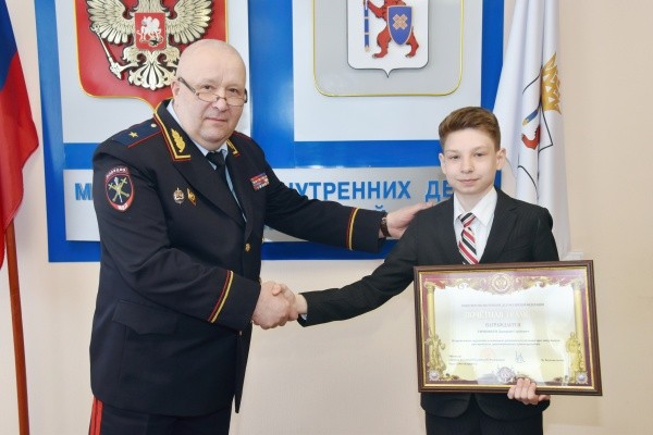 Вручение наград от МВД России юным героям стало ежегодной традицией. В 2022 году наша республика была представлена в этом списке учащимся йошкар-олинской школы № 27 Дмитрием Тимофеевым. Семиклассник проявил бдительность и мужество, оказав полицейским помощь в задержании грабителя, который отобрал мобильник у первоклассницы.