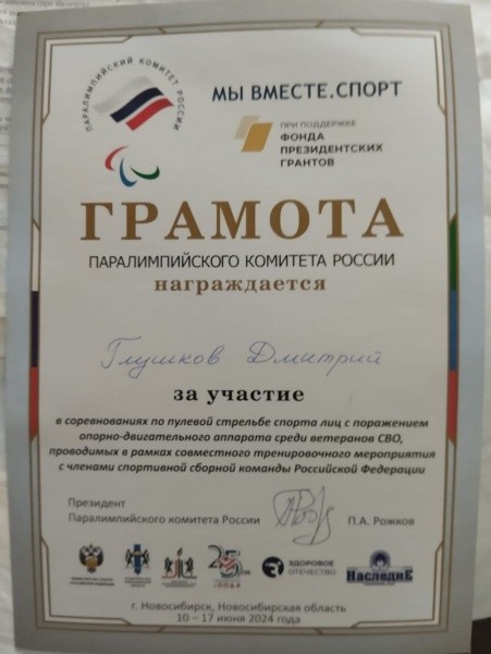 От нашей республики участие в масштабном мероприятии принял боец СВО Дмитрий Глушков. По итогам соревнований участник из Марий Эл был награжден грамотой Паралимпийского комитета России.
