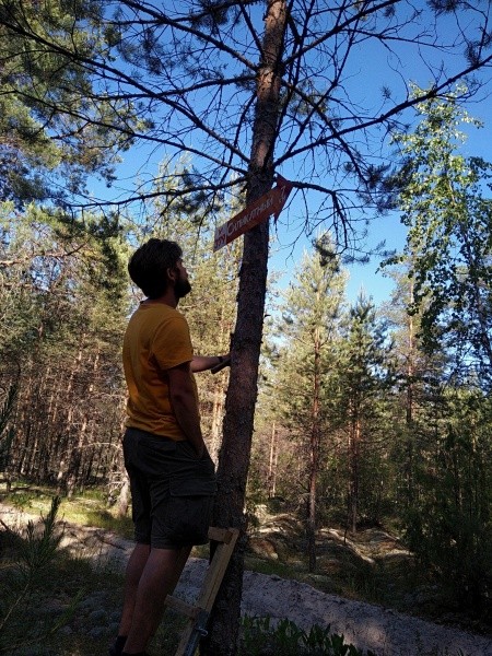 В прошедшие выходные экипаж добровольцев отправился установить указатели на северном маршруте за поселком Силикатный в Звениговском районе и по пути поставить две стрелки в районе озера Сайвер. В следующий выезд активисты планируют установить юбилейный, сотый указатель.
