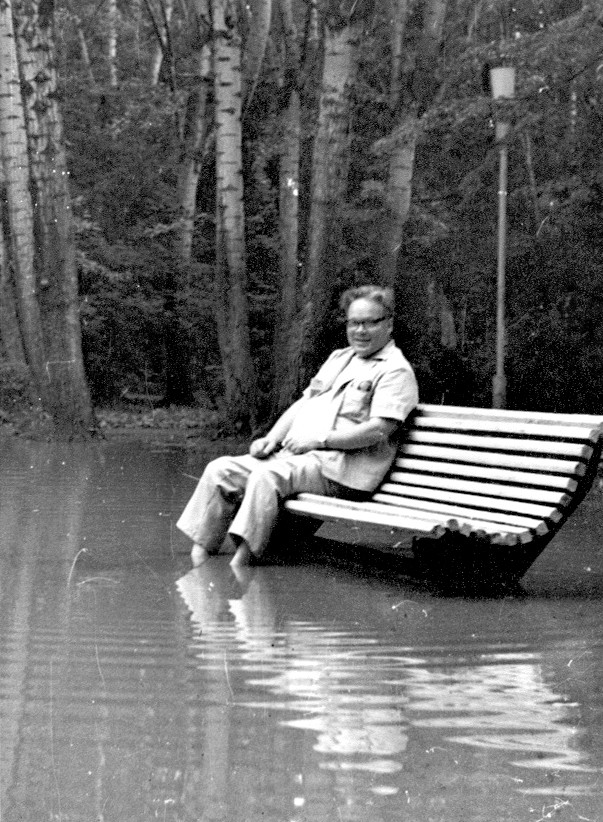 Даже люди серьезных профессий могут позволить себе расслабиться – достаточно вспомнить знаменитое фото Альберта Эйнштейна с высунутым языком. А на одном из снимков нашего архива запечатлен знаменитый писатель-романист Аркадий Крупняков. Он восседает на скамейке посреди огромной лужи и, опустив ноги в воду, явно наслаждается моментом.