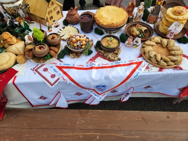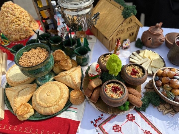 Они приготовили для гостей множество блюд марийской национальной кухни. Это и знаменитые блины «Коман мелна» с сырным шариком «Туара», и подкоголи с мясом, и марийский закрытый пирог «Кравец», и медовые колобки «Ӱяча». А еще на столе, накрытом представителями нашей республики, были запеченные перепела, фаршированные гречкой и белыми грибами; конопляники (конопляный хлеб), суп с лашкой, полбяная каша на сливках с томленой свиной грудкой и белыми грибами, марийский морс с калиной и медом, а также несколько вариантов ароматного иван-чая. Гости могли попробовать сыровяленые колбасы и выдержанные сыры из козьего и овечьего молока, марийский мед.